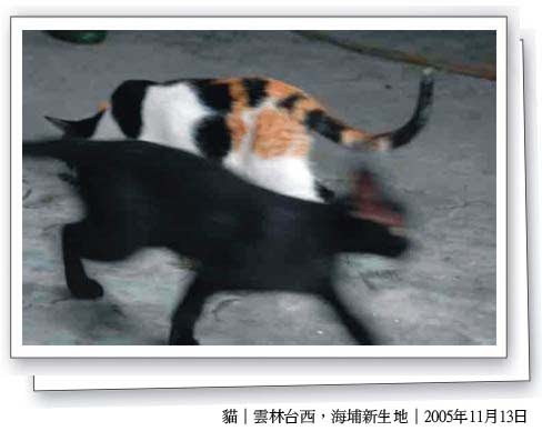 文|施無畏(中興大學歷史系教授) 母親獨自住在海埔新生地的魚塭,養了一隻黑貓和一隻花貓。2006年年初,兩歲不